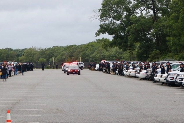 Unidades K9 de distintos departamentos de policía de Long Island se alinearon en el Veterans Memorial Park de Calverton esta mañana para presentar sus condolencias a “Rocky,” el agente canino K9 de la Policía de Riverhead que murió cumpliendo su deber el pasado 2 de septiembre.